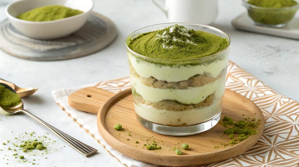 Raffiné, léger et plein de fraîcheur, ce tiramisu au matcha apporte une touche contemporaine à un grand classique. Ses saveurs subtiles et sa couleur éclatante en font un dessert aussi délicat à regarder qu’à déguster.